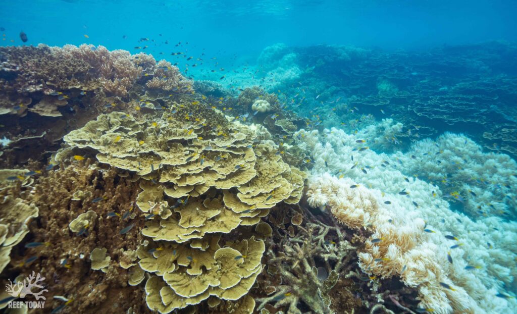 Freshwater run-off along with slightly elevated water temp has caused some coral stress in top 3m depth. The response, corals release their symbiotic algae, or zooxanthellae to become pale or white. The fluorescent colours is due to protein pigments within coral tissue.